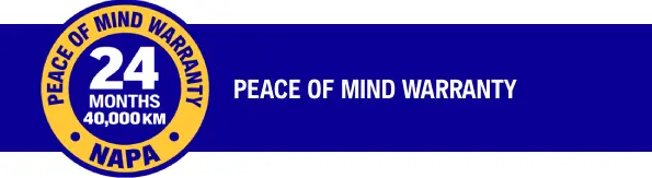 Under the NAPA AUTOPRO banner, we provide exceptional benefits such as the Peace of Mind Warranty and the 10/400 Maintenance Warranty. These warranties ensure top-quality service and peace of mind. Our Peace of Mind warranty offers 24 months or 40,000 km of worry-free protection on eligible work or repairs, valid anywhere in North America.